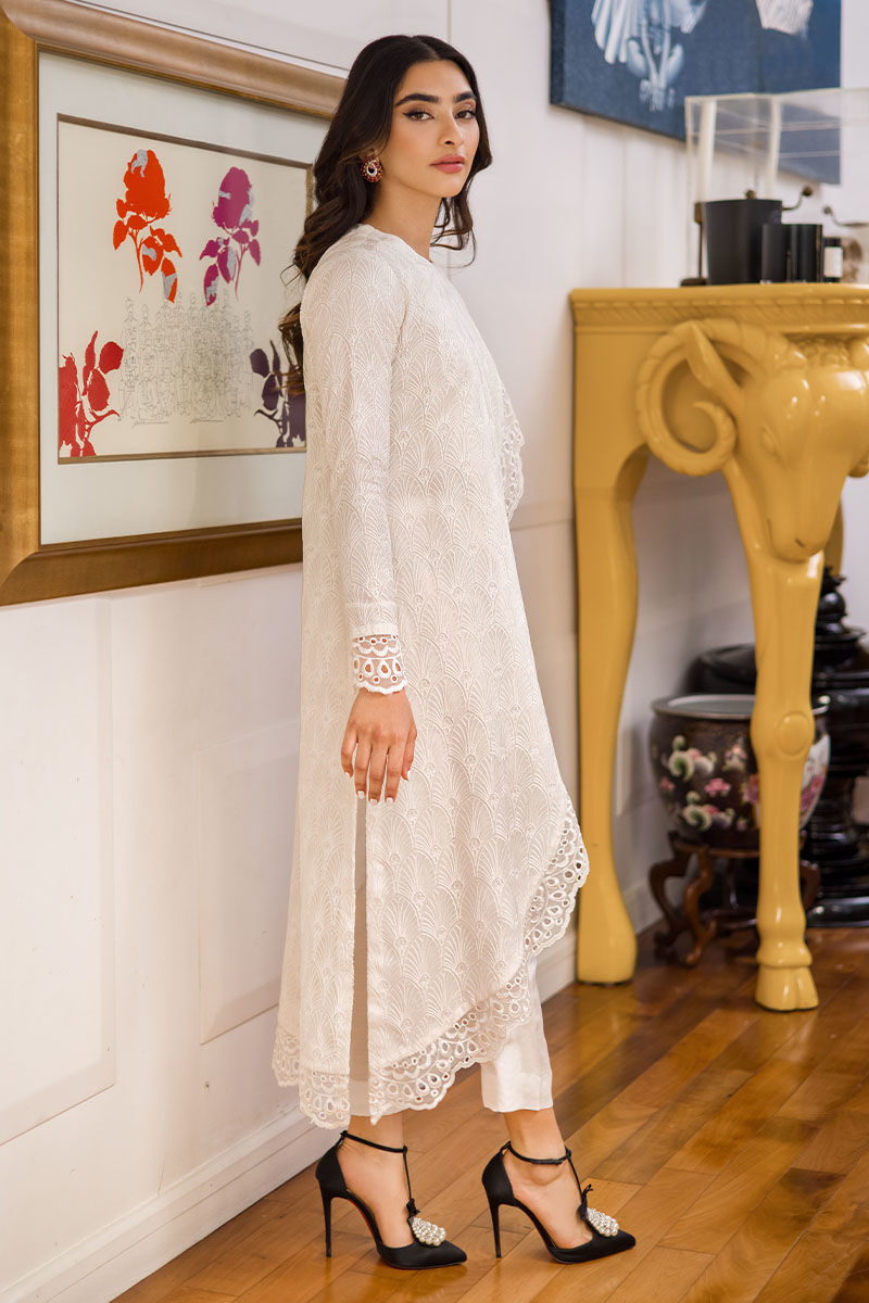 Introducing Aniqah, the embodiment of timeless beauty and grace. Crafted from pure organza fabric, this stunning piece features delicate self-embroidery that adds an ethereal touch to your ensemble. The cutwork embroidery on the side exudes sophistication, while the handmade pearl tassels on the sleeves provide a touch of luxury. Aniqah is the perfect statement piece for any occasion, whether it's a wedding or a formal event. With its intricate craftsmanship and attention to detail, Aniqah is a must-have for any fashion-savvy individual. Elevate your style game with Aniqah and let your beauty shine through.