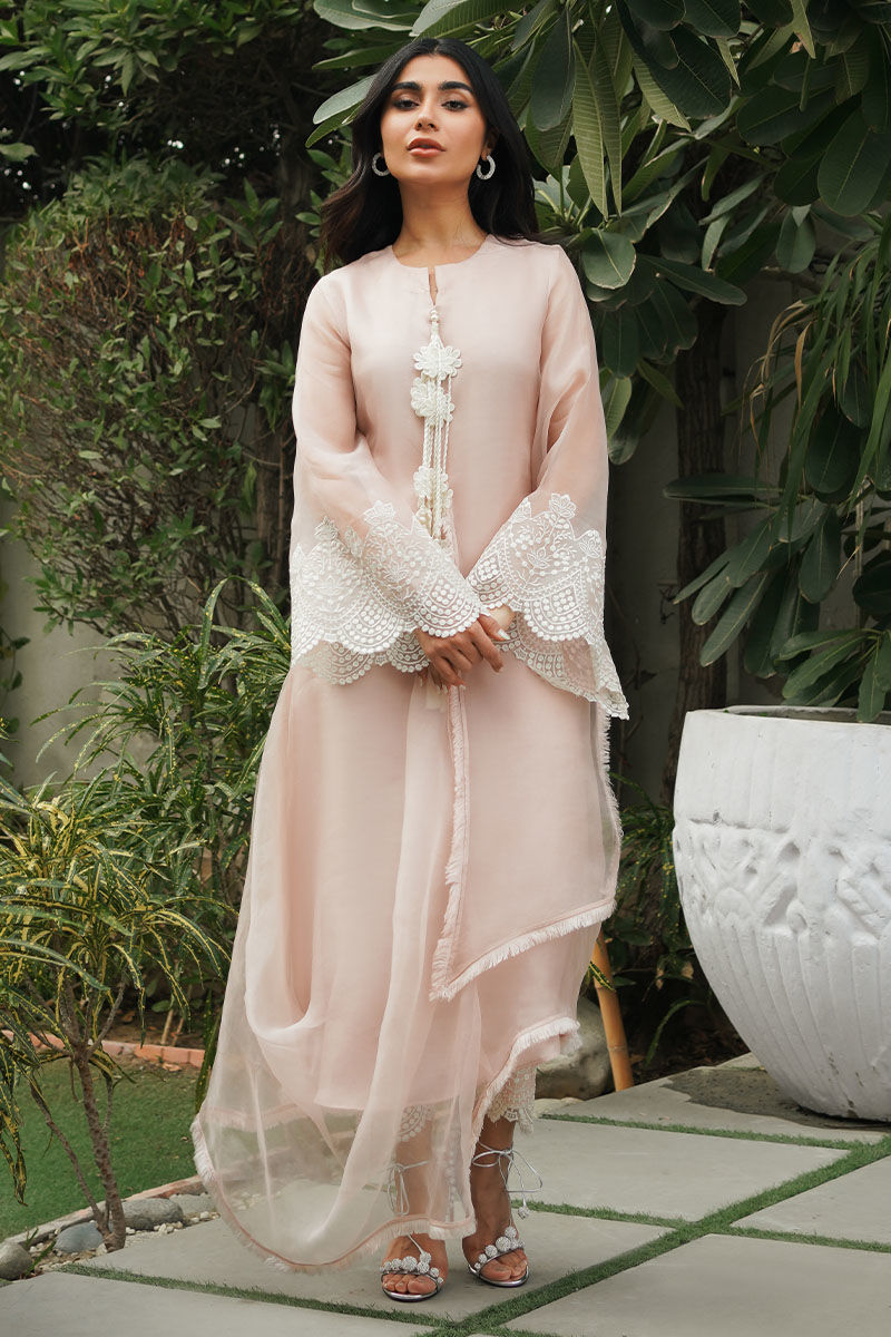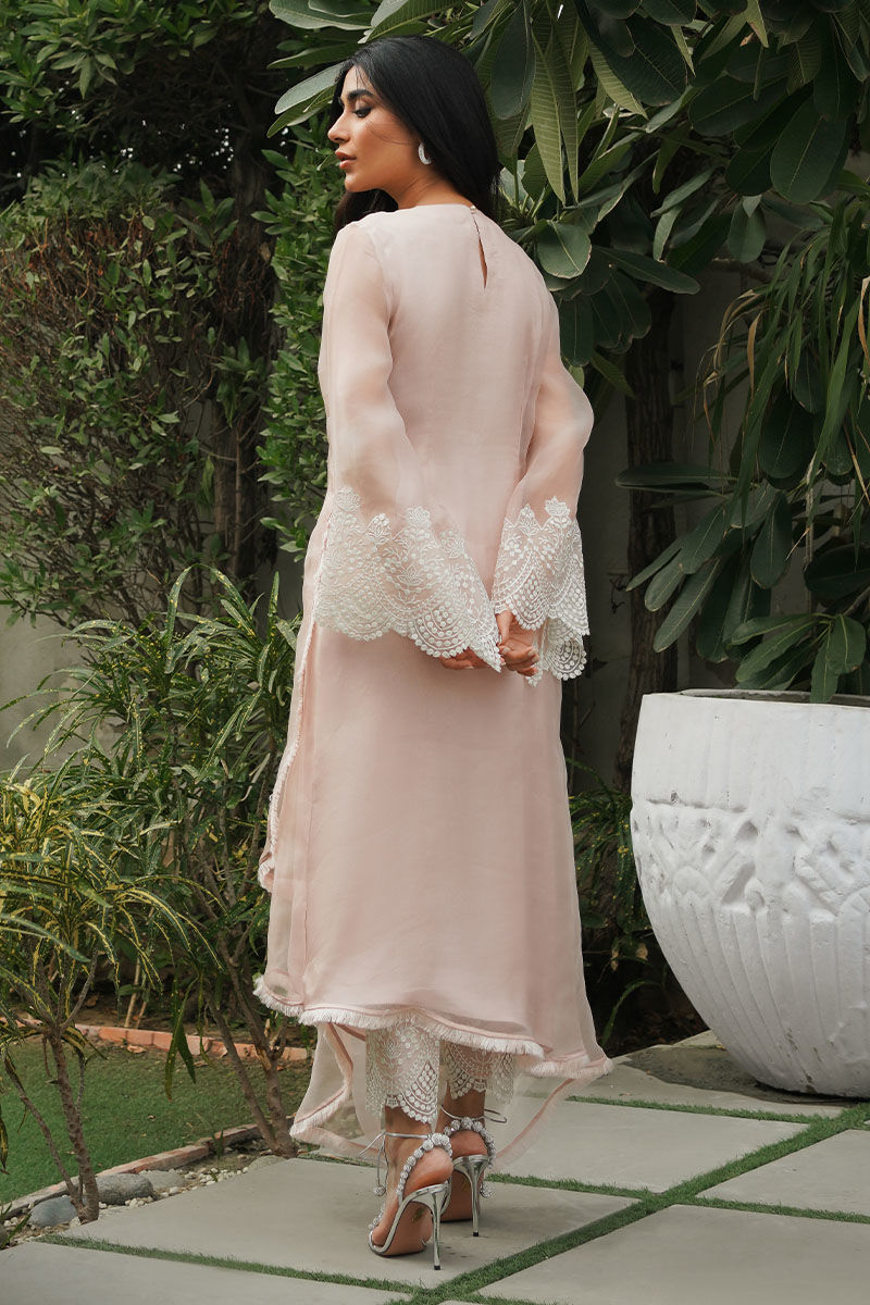 Color: Pink Fabric: Organza Work Details: Cutwork Appliqué