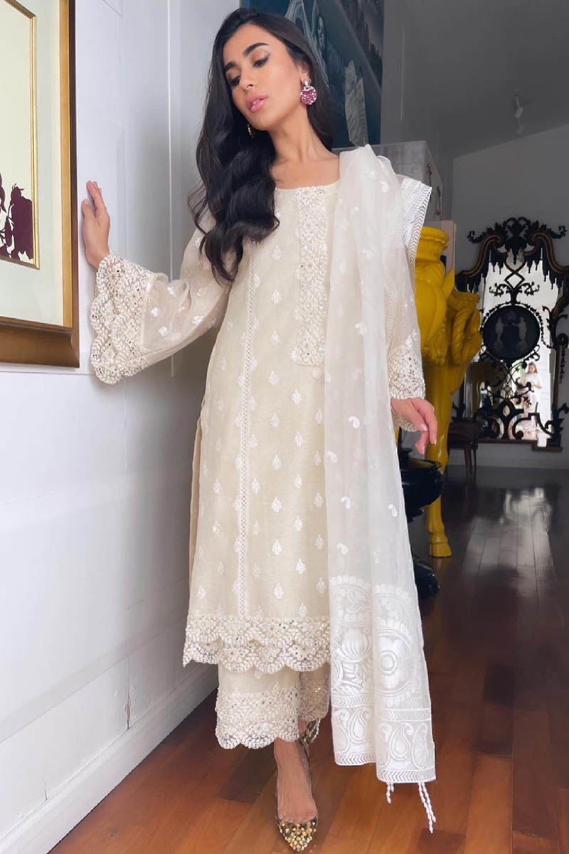 Color: Ivory Fabric: Cotton Net Work Details: Embroidery