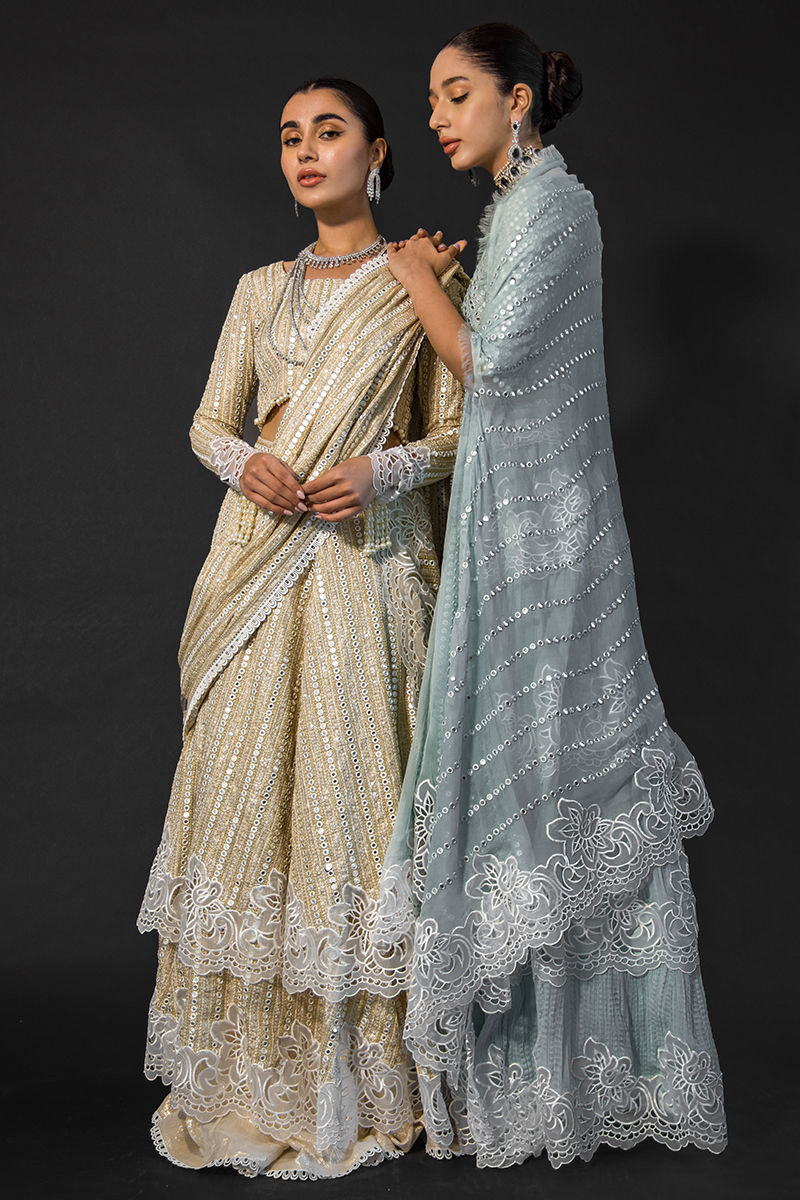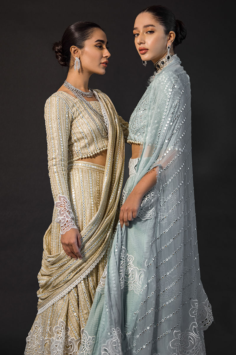 Color: Ice Blue Fabric: Georgette Chiffon Work Details: Embellished