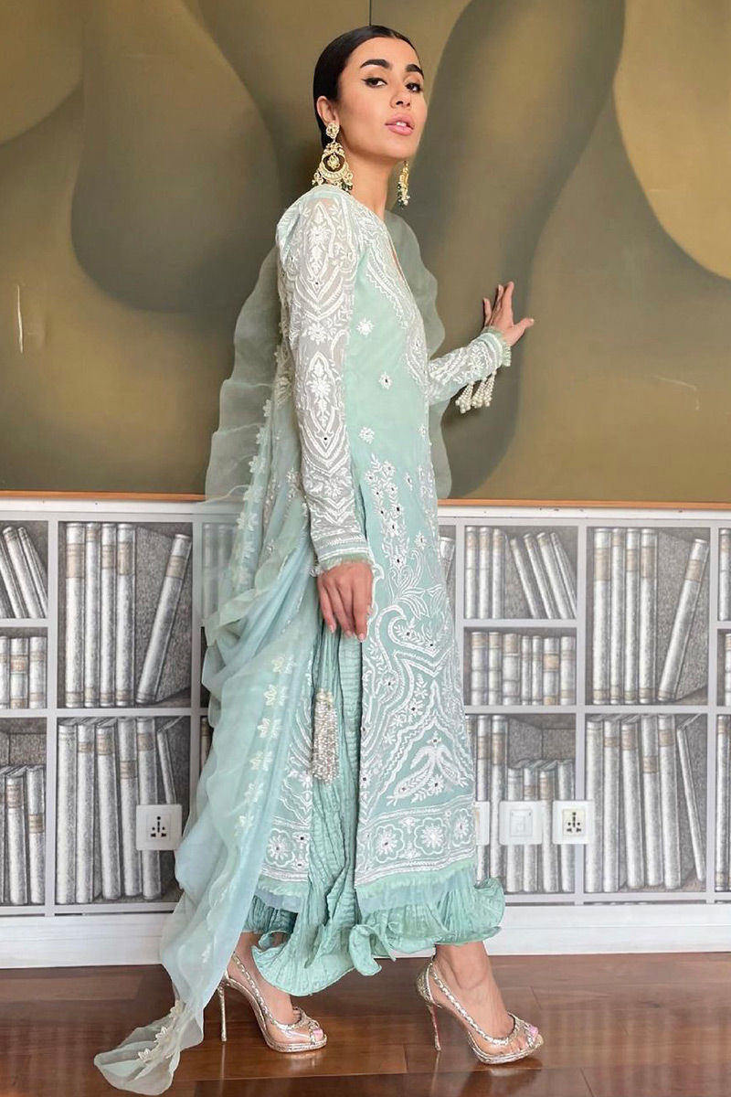 Color: Mint Green Fabric: Net Work Details: Embellished