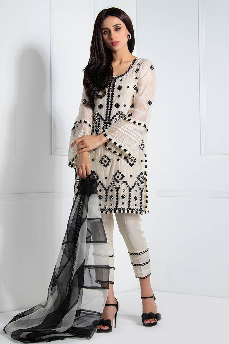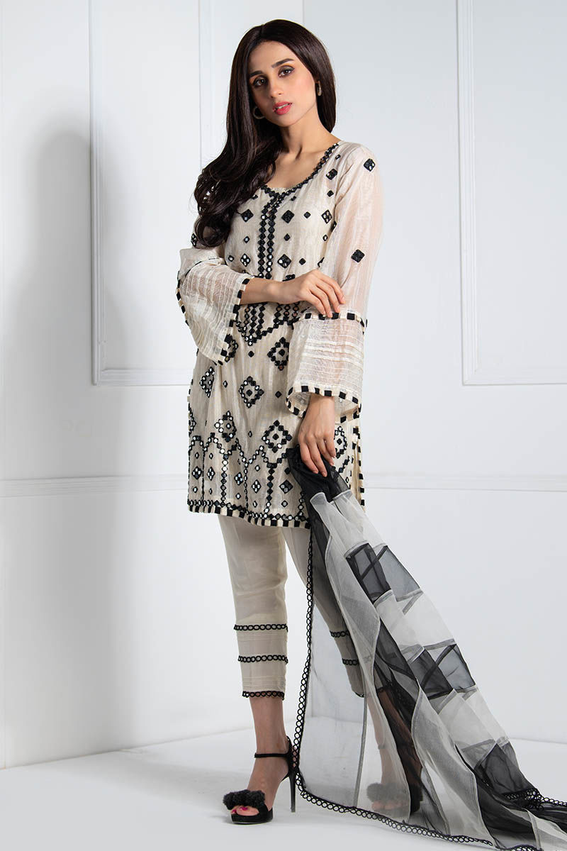 Color: Beige Fabric: Cotton Net Work Details: Mirror Work