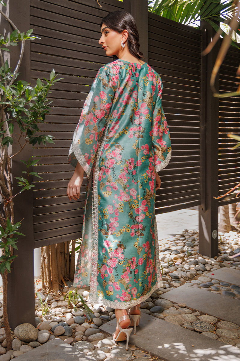 Color: Aqua Green And Pink Fabric: Mix Raw Silk Work Details: Digital Print