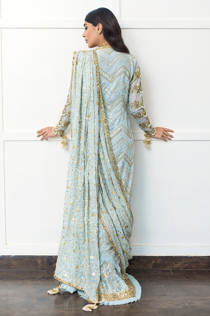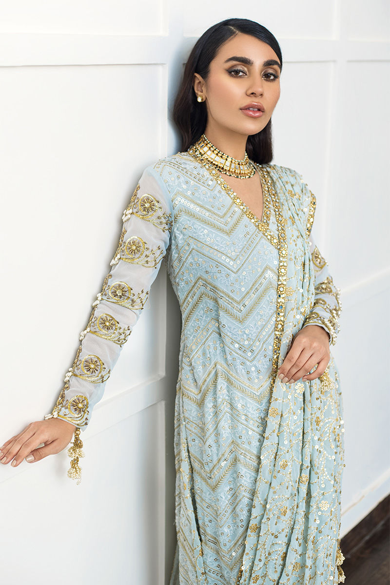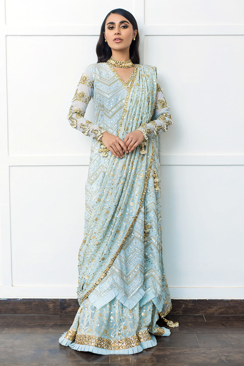 Color: Light Blue Fabric: Georgette Chiffon Work Details: Embellished
