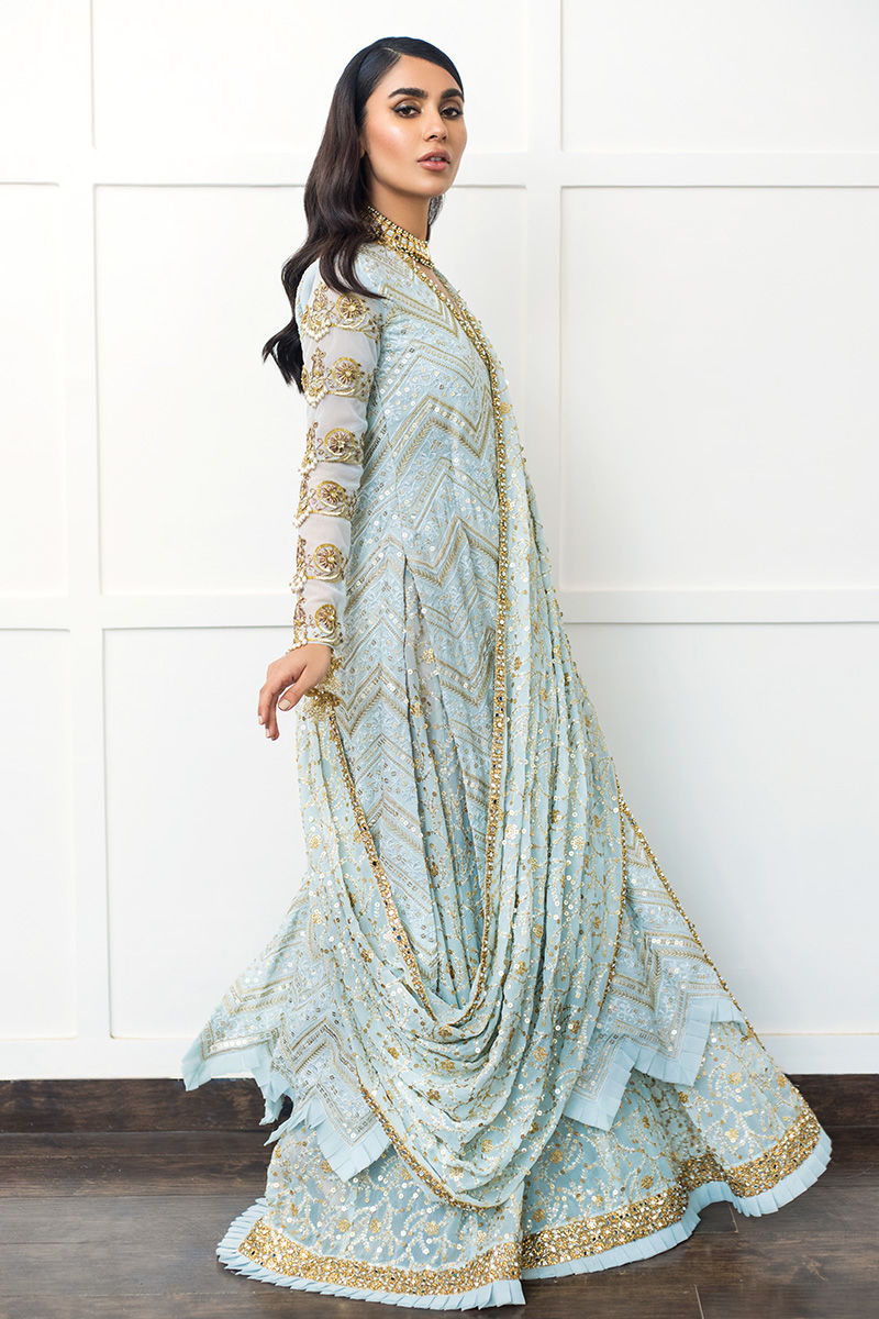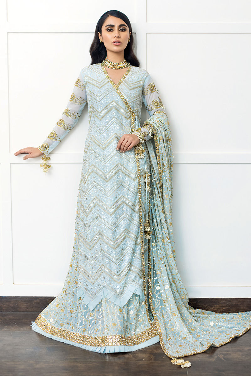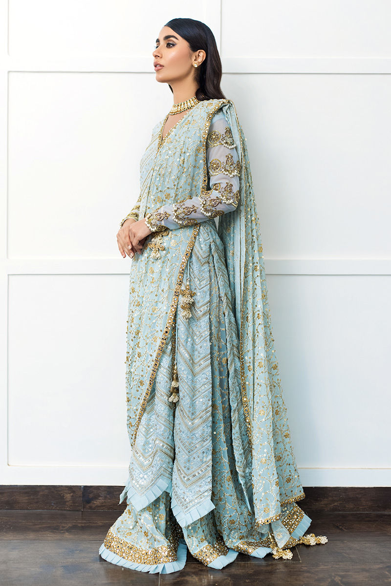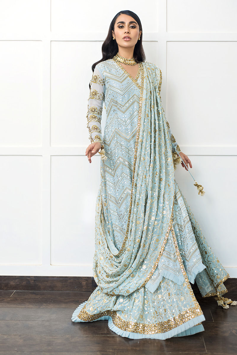 Color: Light Blue Fabric: Georgette Chiffon Work Details: Embellished
