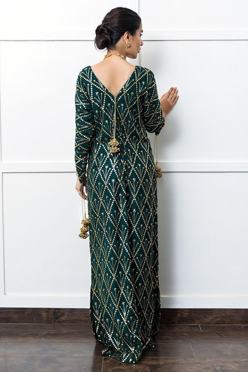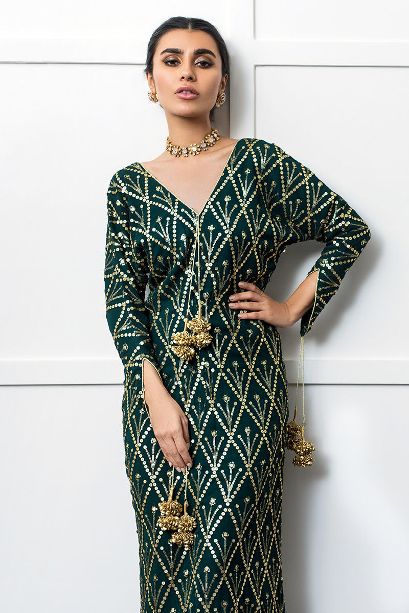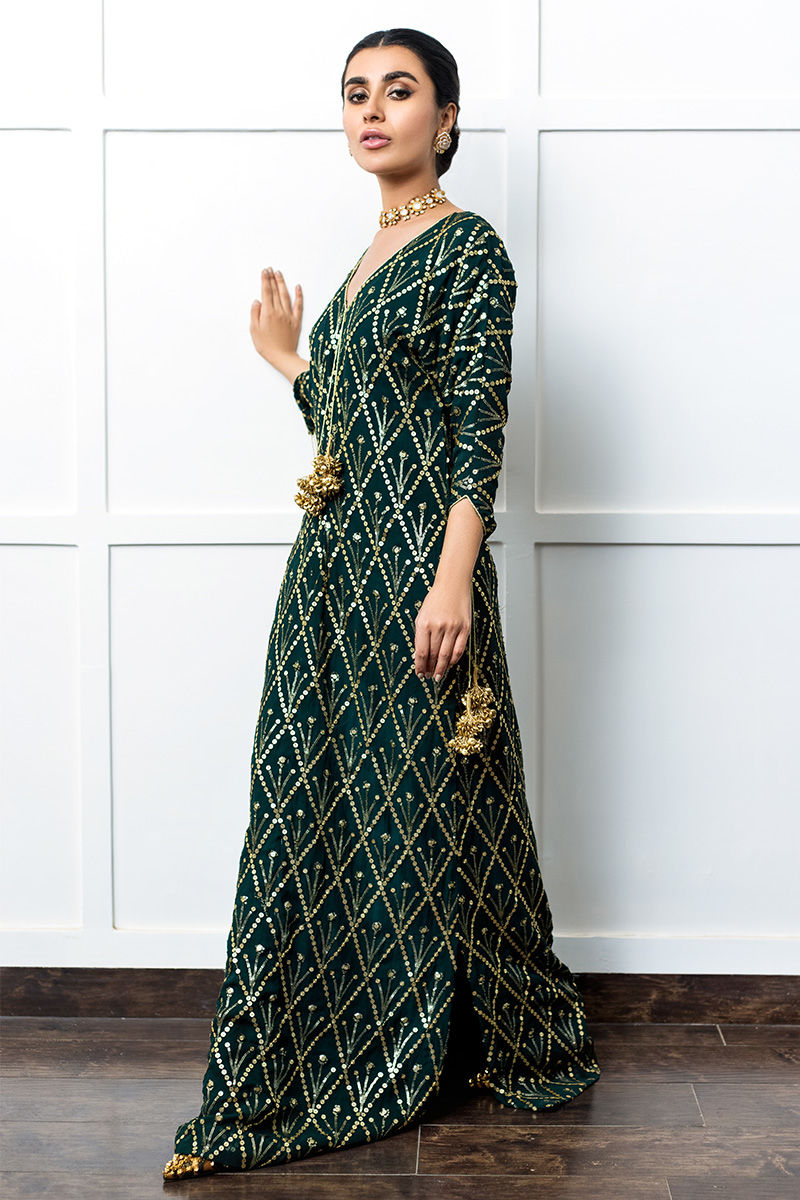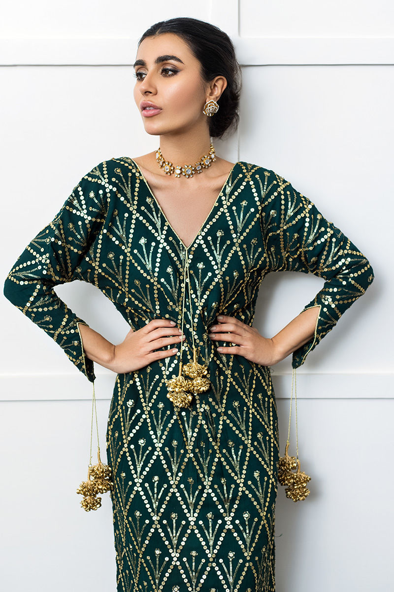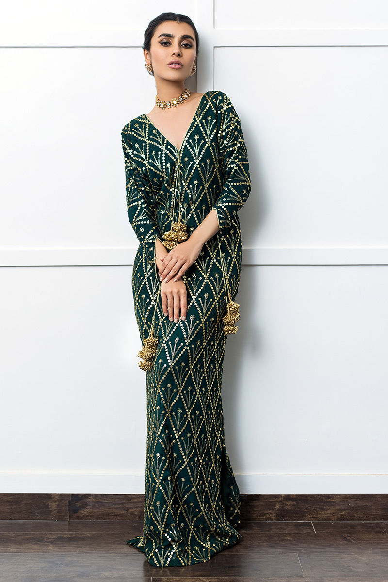 Color: Emerald Green Fabric: Georgette Chiffon Work Details: Embellished
