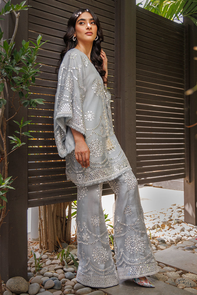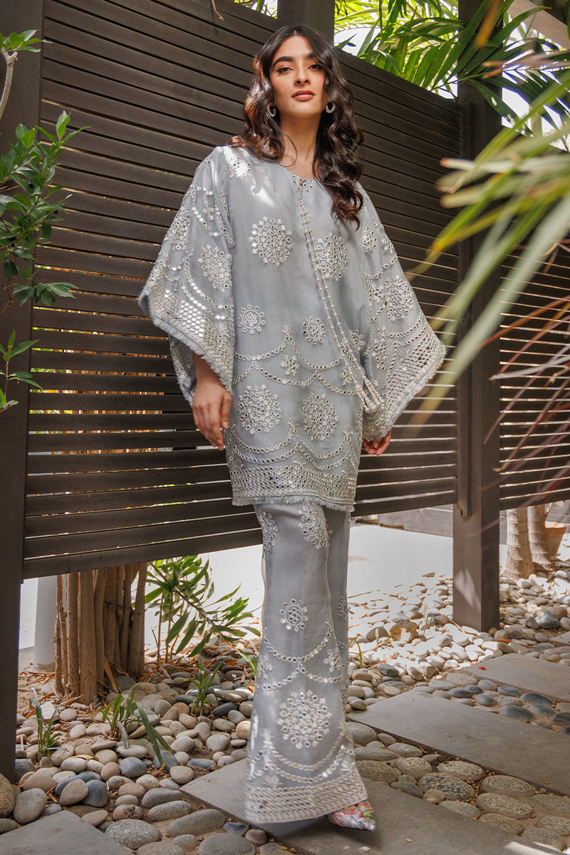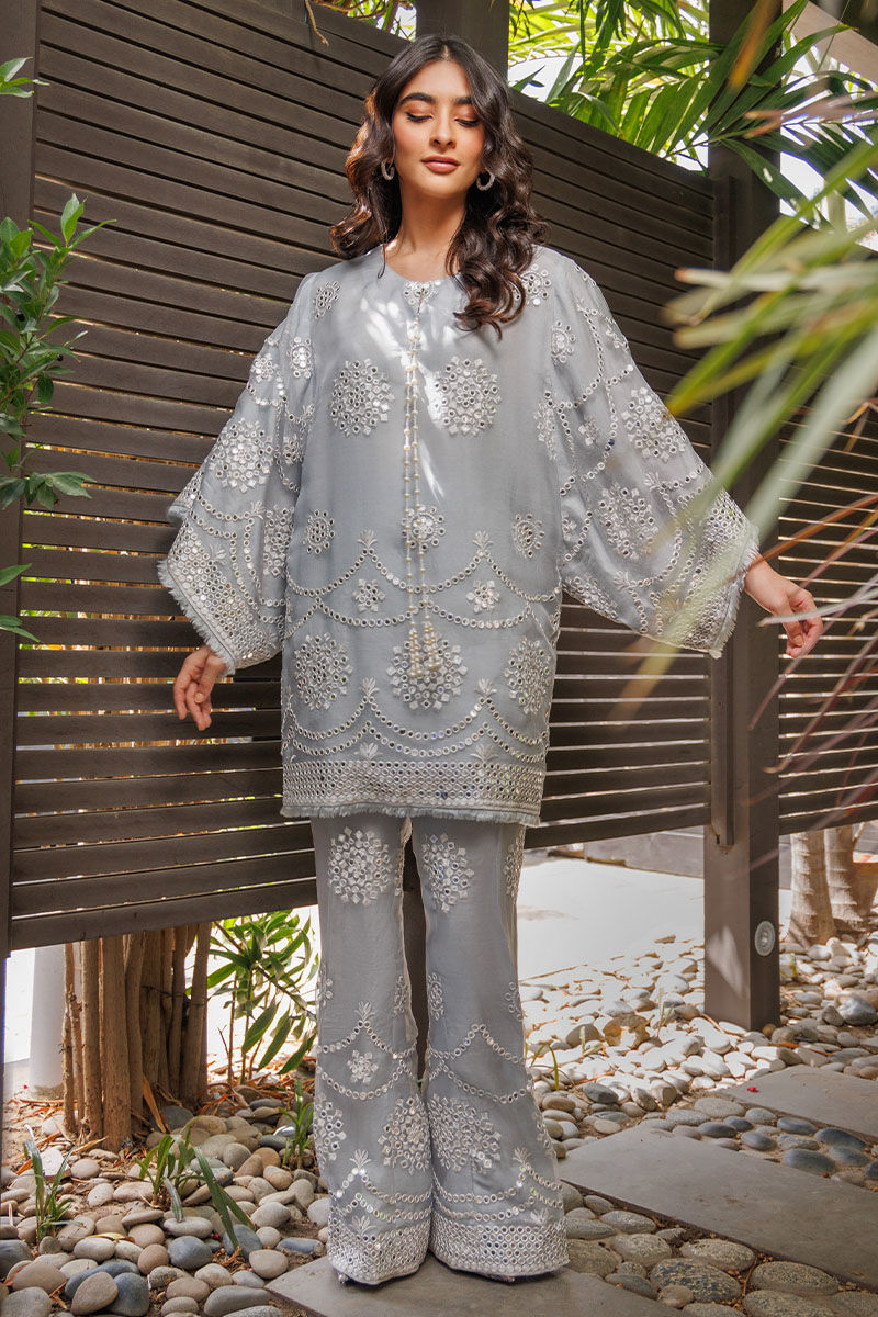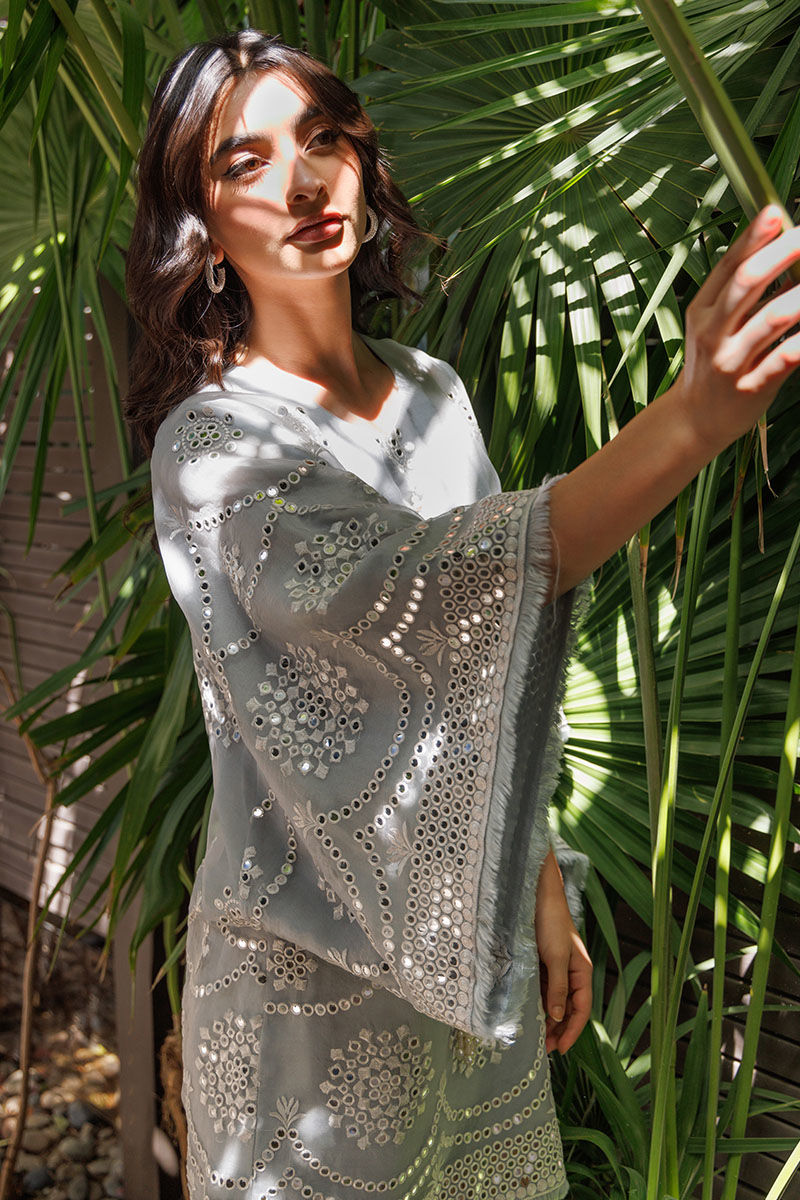 Color: Gray Fabric: Pure Organza Work Details: Foil And Thread Work